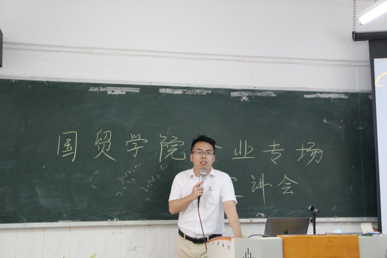 首先,由國貿(mào)學院校外教學李遠興老師介紹蒞臨本次宣講會的領(lǐng)導嘉賓并講話,希望同學們可以通過本次宣講會從中體會自己對未來工作的想法和選擇職業(yè)的方向。