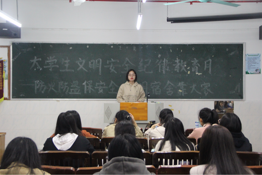 良好的紀(jì)律是學(xué)好科學(xué)文化知識的保障。在一個(gè)有良好校風(fēng)、班風(fēng)的環(huán)境中,必然受到良好風(fēng)氣的熏陶。因此,國貿(mào)學(xué)院于2021年3月22日晚上7點(diǎn)在西一教學(xué)樓四樓各固定多媒體教室開展“大學(xué)生文明紀(jì)律教育月--防火防盜保安室,文明宿舍靠大家”的主題班會(huì),讓我們一起來做一個(gè)尊紀(jì)守禮的合格大學(xué)生。本次主題班會(huì)由20級輔導(dǎo)員鄭慶國老師和李明鈺老師主講。