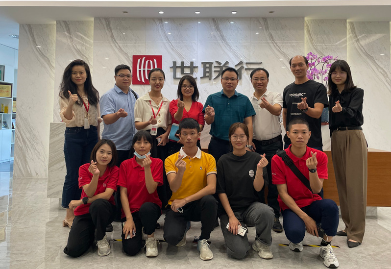 2021年9月14日,在中秋佳節(jié)來臨之際,廣州華立科技職業(yè)學(xué)院校長助理郭仲先、管理學(xué)院院長溫偉勝、學(xué)校校企處處長鐘文浩、校外教學(xué)副主任吳小宇等老師到廣州世聯(lián)房地產(chǎn)咨詢有限公司看望2019級在崗實習(xí)的學(xué)生,開展中秋節(jié)慰問活動。廣州世聯(lián)人力行政總監(jiān)吳小薇對我校一行的到來表示熱烈的歡迎,并帶領(lǐng)我校一行參觀實習(xí)工作環(huán)境。