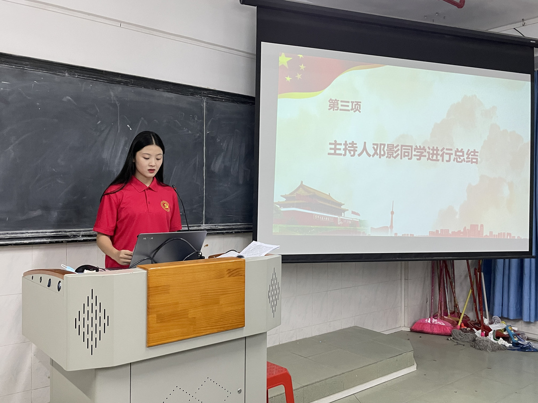主持人鄧影同學(xué)進(jìn)行總結(jié):一百年波瀾壯闊,一百年風(fēng)雨兼程,一百年碩果累累,我們實(shí)現(xiàn)了第一個一百年奮斗目標(biāo),歷史性地解決了絕對貧困問題。何其有幸,我們生在紅旗下,長在春風(fēng)里。作為當(dāng)代青年,我們要忠心向黨、永立潮頭人民。目光所至皆為華夏,五星閃耀皆為信仰!