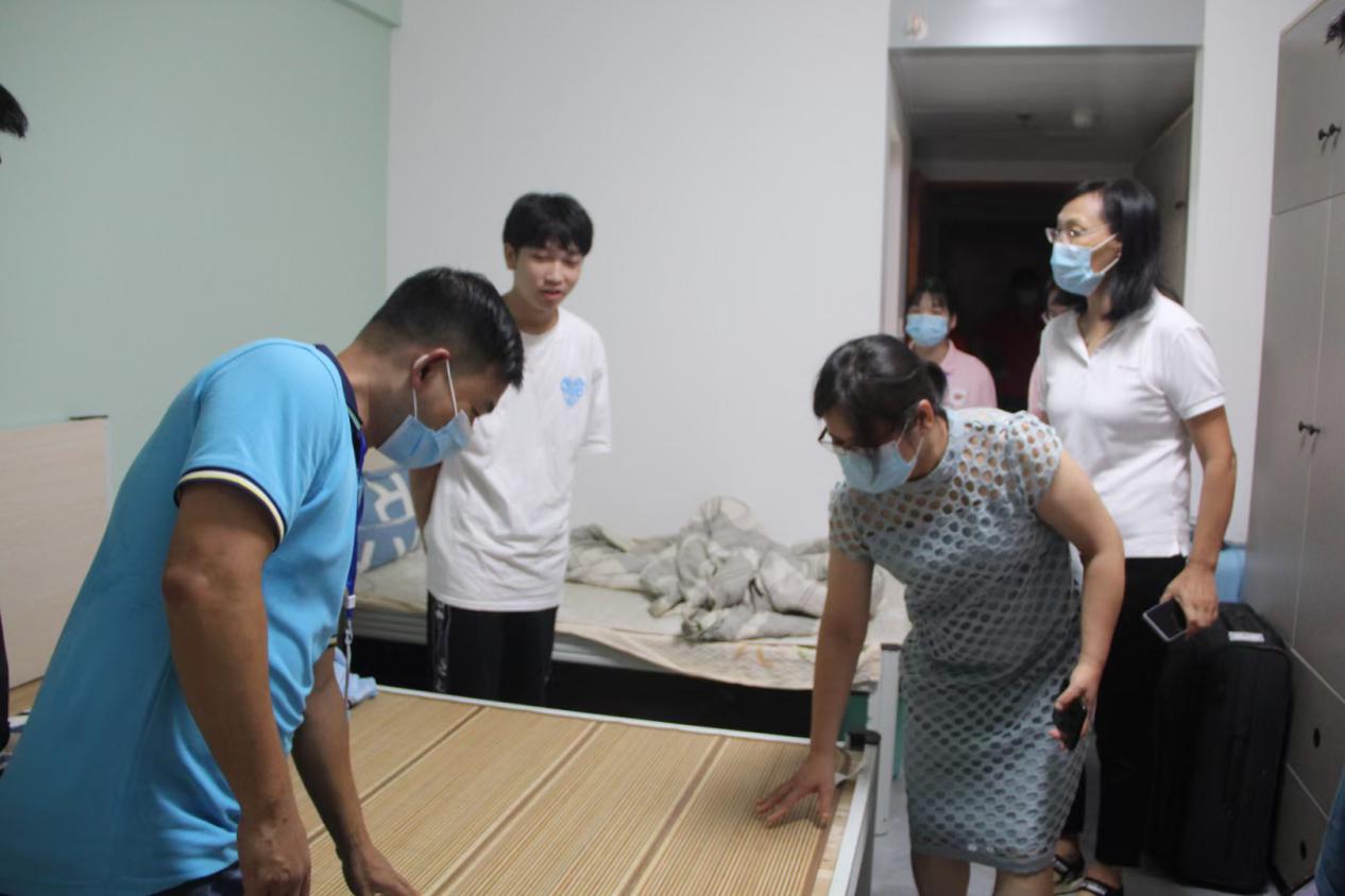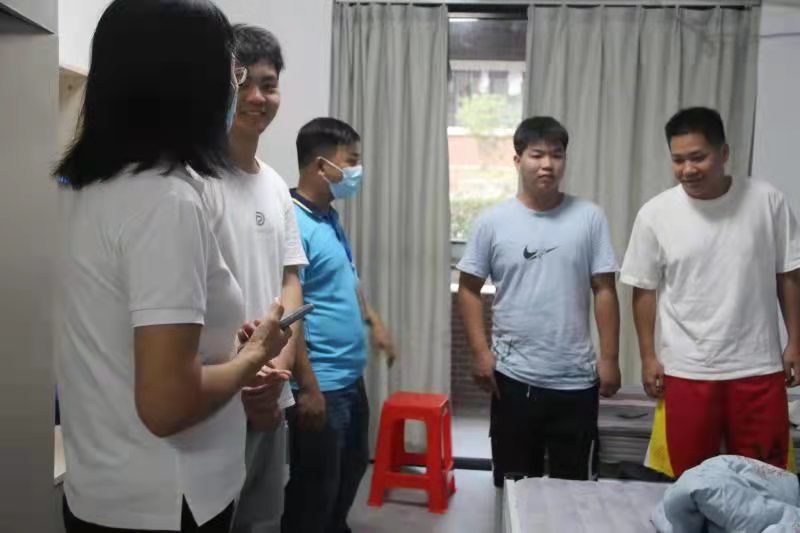 “家是哪里的?”“到學(xué)校還適應(yīng)嗎?”“住的習(xí)慣嗎?”每到一處,領(lǐng)導(dǎo)會(huì)親切地詢(xún)問(wèn)同學(xué)們生活是否適應(yīng)、入學(xué)感受如何,輕松的對(duì)話迅速拉近了彼此的距離。同時(shí)希望同學(xué)之間在生活中要相互照顧,學(xué)習(xí)中要互相幫助,共同進(jìn)步,“挺適應(yīng)的,”“謝謝老師” 新生們狀態(tài)精神飽滿(mǎn),都很適應(yīng)宿舍的生活,對(duì)領(lǐng)導(dǎo)和老師們的到來(lái)十分感動(dòng),紛紛禮貌道謝?!坝惺裁磫?wèn)題和需求,及時(shí)向宿管阿姨和輔導(dǎo)員老師反饋”,領(lǐng)導(dǎo)告訴同學(xué)們,學(xué)校所有老師都會(huì)第一時(shí)間幫助解決。