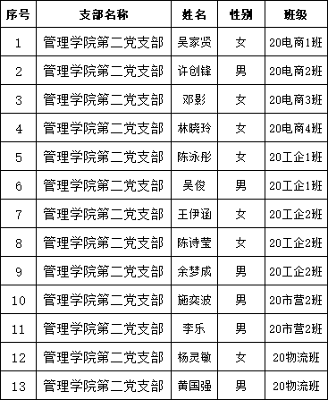 根據(jù)廣州華立科技職業(yè)學(xué)院黨委發(fā)展黨員的要求,經(jīng)本人申請(qǐng)及黨組織培養(yǎng)和考察,2021年11月26日管理學(xué)院黨總支討論研究,擬將吳家賢等13名同志列為近期預(yù)備黨員發(fā)展對(duì)象,總支將在近期召開黨員大會(huì)討論他們的入黨問題,并上報(bào)黨委。為了進(jìn)一步增強(qiáng)發(fā)展黨員的透明度,確保發(fā)展新黨員的質(zhì)量,根據(jù)《中國(guó)共產(chǎn)黨發(fā)展黨員工作細(xì)則(試行)》等文件的有關(guān)精神,現(xiàn)將發(fā)展對(duì)象的名單公示如下(具體名單見附件):