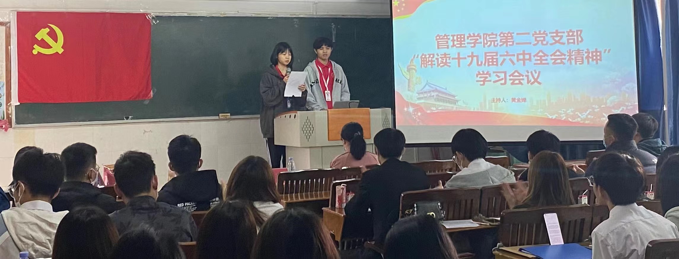 2021年12月8日上午10時(shí)在西三312教室舉行管理學(xué)院第二黨支部“解讀十九屆六中全會(huì)精神”學(xué)習(xí)會(huì)議,參會(huì)人員有:管理學(xué)院第二黨支部紀(jì)檢委員戴雙雅同志、預(yù)備黨員、發(fā)展對(duì)象和黨建小組成員。