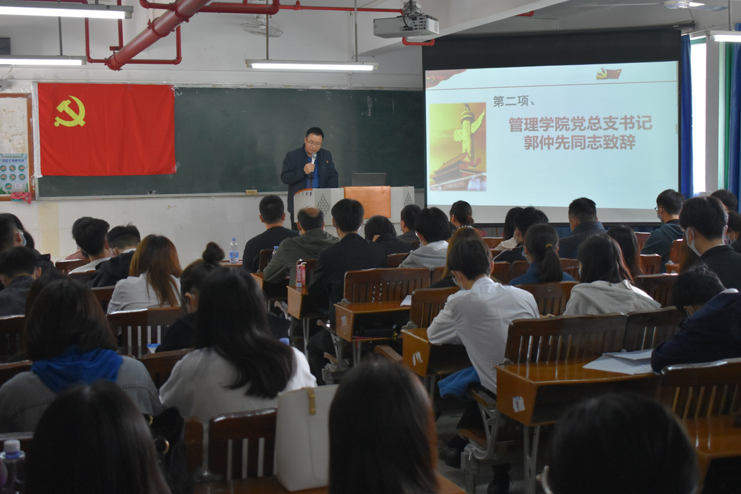 管理學(xué)院黨總支書記郭仲先同志致辭:“做”一名合格共產(chǎn)黨員,必須認(rèn)清重大問題,堅定理想信念,這是做一名合格黨員的動力源泉。發(fā)展對象要時刻牢記自己入黨的初心,堅定自身的理想信念,思想上要緊跟黨的領(lǐng)導(dǎo),定期進(jìn)行修正。在工作中,學(xué)生黨員要起先鋒模范作用,要有“吃苦在前,享樂在后”的覺悟,在工作中力爭為群眾辦實事。