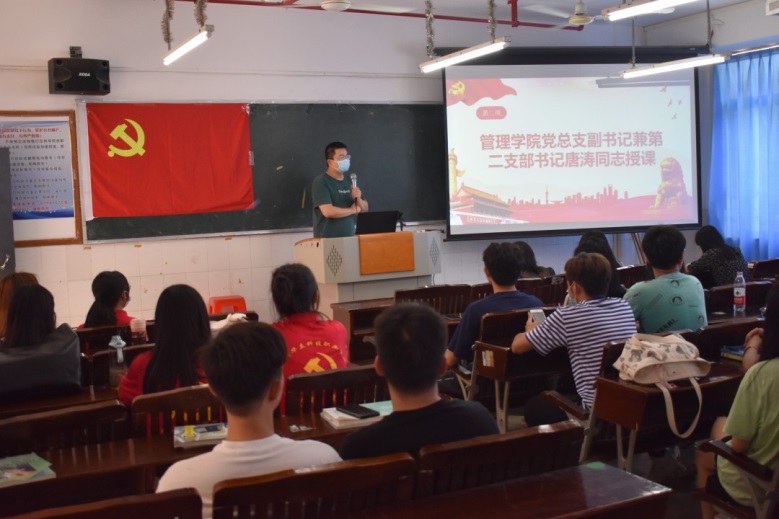 會議第二項(xiàng):由管理學(xué)院黨總支副書記(第二支部書記)唐濤同志講話。講話內(nèi)容圍繞中國共產(chǎn)黨的性質(zhì),黨的思想等方面展開,教育同學(xué)們了解為人民服務(wù)的重要意義,黨的先進(jìn)性以及黨的行動指南。他還指出身為青年要努力發(fā)揮銳意進(jìn)取、勇當(dāng)先鋒的青年特質(zhì),鞏固信仰之機(jī),把握思想之舵,堅(jiān)定“四個自信”做到兩個維護(hù)。學(xué)生黨員應(yīng)主動在同學(xué)中宣傳黨中央關(guān)于疫情防控的方針政策,做好自我防控,積極參與志愿活動,帶動同學(xué)共同學(xué)習(xí),切實(shí)發(fā)揮自身在思想政治上的先鋒模范作用。
