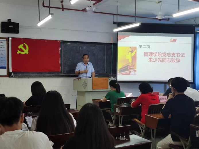 參會(huì)人員:管理學(xué)院黨總支書記朱少先同志、黨總支副書記兼第二黨支部書記唐濤同志、第一黨支部書記康信恩同志、