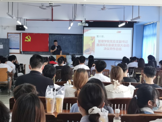 最后,由黨總支副書記兼第二黨支部書記唐濤同志宣讀支部大會(huì)的會(huì)議并作總結(jié)。