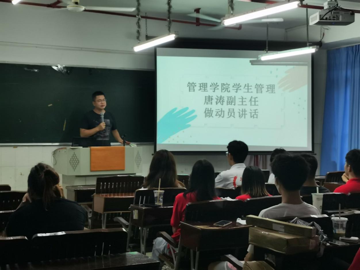 管理學(xué)院黨總支副書記兼學(xué)生管理唐濤副主任做動員講話