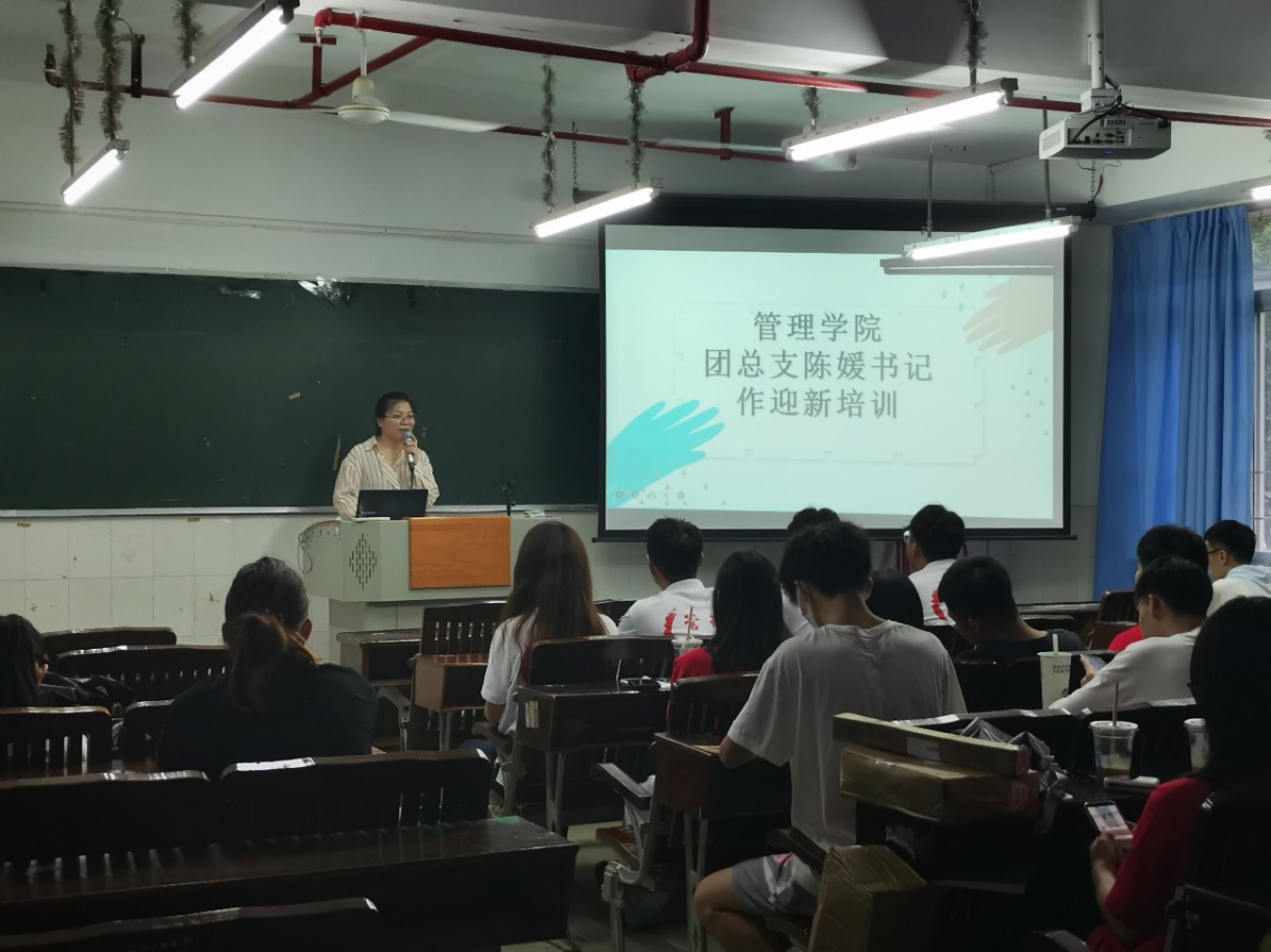 管理學(xué)院團(tuán)總支陳媛書記作迎新培訓(xùn)