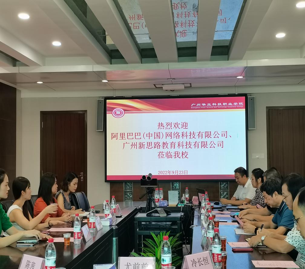 會議開始,由廣州華立科技職業(yè)學院易健民校長發(fā)表致辭,熱烈歡迎阿里巴巴(中國)網(wǎng)絡技術(shù)有限公司和廣州新思路教育科技有限公司來校交流,對于阿里巴巴授予學?!鞍⒗锇桶蛧H站數(shù)字貿(mào)易人才基地”表示感謝。易健民校長表示,希望阿里巴巴把企業(yè)先進文化理念融入人才培養(yǎng)過程中,校企雙方協(xié)同培養(yǎng)跨境電商高端人才,探索校企合作人才培養(yǎng)新模式,通過校企理論與實踐互融互通,開拓相關專業(yè)學生的就業(yè)方向,幫助學生實現(xiàn)精準就業(yè)。