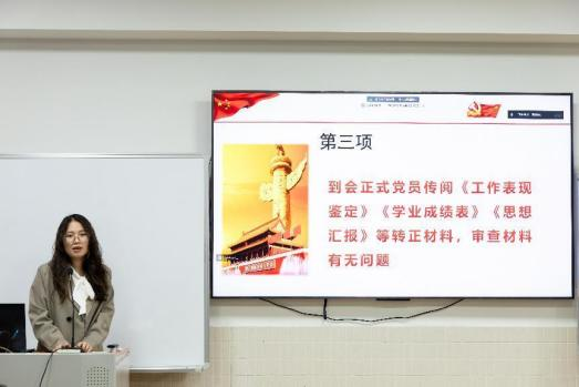 為了給黨組織注入新鮮血液,擴(kuò)大黨員隊(duì)伍,提高黨組織的戰(zhàn)斗力、凝聚力和創(chuàng)造力,加強(qiáng)黨員思想政治教育,發(fā)揮黨組織戰(zhàn)斗堡壘作用和黨員先鋒模范作用,經(jīng)管學(xué)院黨總支第三黨支部2023年12月29日在二教407舉行2023年下半年預(yù)備黨員轉(zhuǎn)正大會(huì)。全體師生黨員出席大會(huì),會(huì)議由組織委員溫貴城主持。