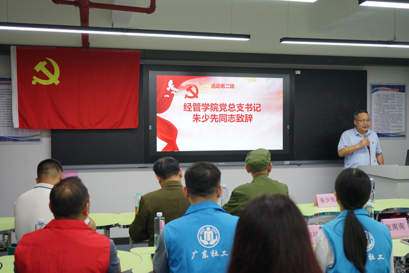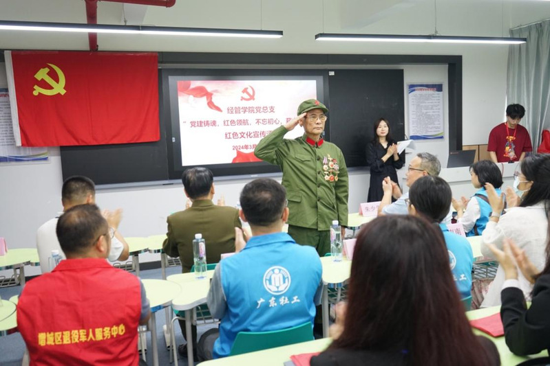 2024年3月27日下午,經(jīng)濟(jì)管理學(xué)院黨總支在西三教學(xué)樓208課室舉行“黨建鑄魂領(lǐng)航向 薪火相傳永向前”主題黨日活動。參加本次活動的有“老兵永遠(yuǎn)跟黨走”紅色宣講團(tuán)代表、戰(zhàn)斗英雄顧海城同志和黃香源同志;廣州市增城區(qū)增江街道社區(qū)工站負(fù)責(zé)同志和黨員代表;經(jīng)濟(jì)管理學(xué)院黨總支書記朱少先同志、支委委員副院長朱向平同志和專職副書記兼學(xué)生黨支部書記謝曉慧同志,以及師生黨員和經(jīng)管學(xué)院黨建小組全體成員。會議由謝曉慧同志主持。
