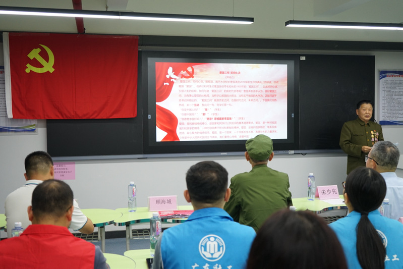 接著由顧海源同志作英模報(bào)告。報(bào)告前,顧海源同志和現(xiàn)場同學(xué)們進(jìn)行了“愛國三問”小互動,顧老向同學(xué)們講解了“國”的象形含義和豐富的文化內(nèi)涵。顧老介紹了他作為“炮兵的眼睛”深入虎穴為我炮兵部隊(duì)偵察報(bào)告?zhèn)鬟f情報(bào)為攻堅(jiān)戰(zhàn)役取得重大勝利榮立二等戰(zhàn)功的戰(zhàn)斗故事,指出我們今天的幸福生活歸根結(jié)底來源于中國共產(chǎn)黨的正確領(lǐng)導(dǎo),來源于革命先烈的英勇犧牲,來源于人民群眾的艱苦奮斗,來源于社會主義制度的優(yōu)越性。