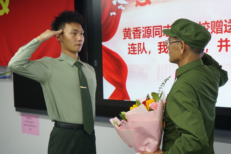 圖7:經(jīng)管學(xué)院退伍學(xué)生代表給黃香源同志獻(xiàn)花