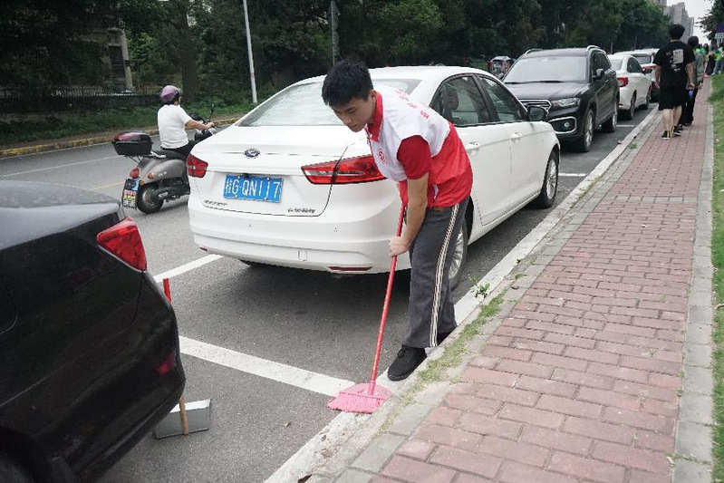 活動中,志愿者們手拿掃把、掃帚、抹布等工具,來到社區(qū)廣場、主干道、公園、地鐵公交站及商圈等地,分成幾個小組,積極行動起來。他們有的清掃路面、廣場等公共設(shè)施附近的垃圾,有的整理亂停放的共享單車,有的擦拭社區(qū)宣傳欄,還有的對小區(qū)公共區(qū)域進(jìn)行了清理。
