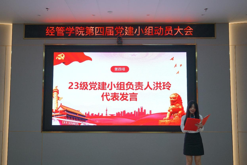 23級黨建小組負責人洪玲同學代表發(fā)言。她表示,作為一名學生干事,要處理好日常學習與做好黨組織工作的關系,合理地分配時間,以良好的學業(yè)基礎促進工作落實,以務實高效的工作檢驗學習成效。嚴格要求自己,加強自身的學習和錘煉,提高黨務工作能力和知識水平。
