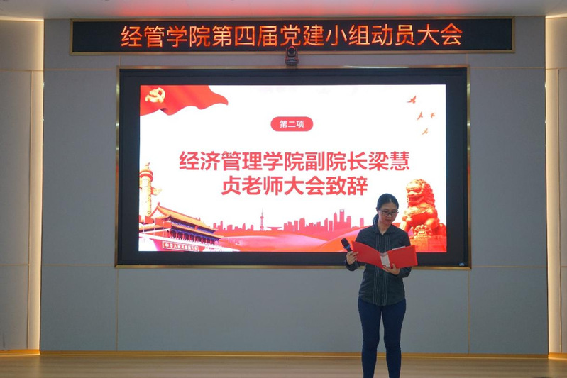 經(jīng)濟管理學院副院長梁慧貞老師為大會致辭。她首先對新加入黨建小組成員表示歡迎,并指出,黨建小組成員須勇于面對和挑戰(zhàn)困難,在實踐中不斷提升自己;積極配合各部門工作,確保黨建工作任務順利推進;同時要明確目標,端正工作態(tài)度,努力把黨建小組工作做得更好。