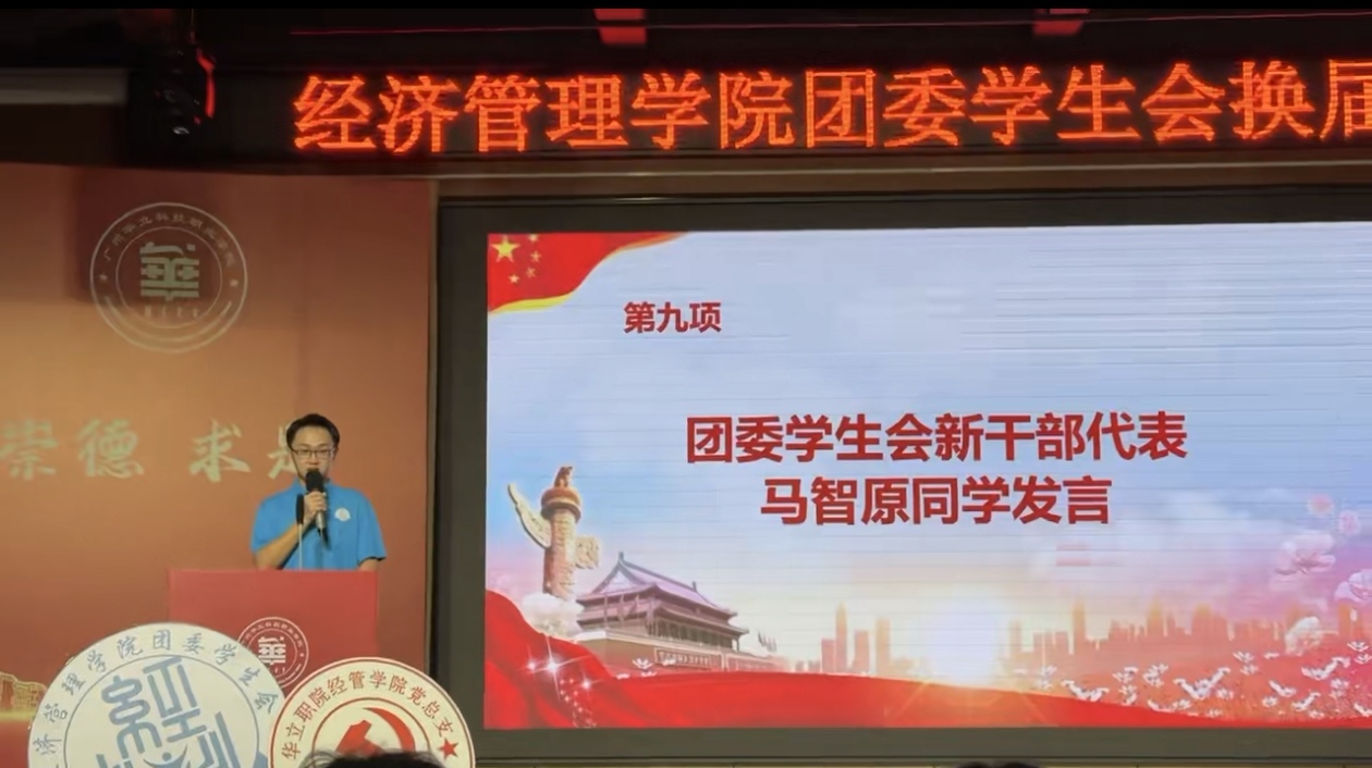 第三屆主席團代表陳志紅同學以"接力棒"為喻,指出“傳承的是經(jīng)管人永不言棄的精神基因”;新任干部代表馬智原則誓言“以數(shù)字化轉型思維開拓工作新局面”。會議現(xiàn)場宣讀了新一屆干部名單及2024—2025學年度團務工作表彰名單,希望被表彰的同學們能在攀登中奉獻青春,在實干中彰顯擔當。