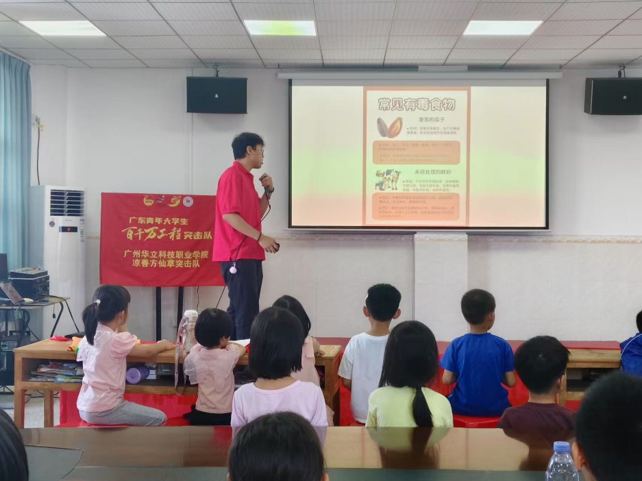為提升食品安全意識(shí),有效防范食物中毒風(fēng)險(xiǎn),2025年7月15日下午,廣州華立科技職業(yè)學(xué)院經(jīng)濟(jì)管理學(xué)院涼善方仙草突擊隊(duì)在廣州市增城區(qū)陸村村為當(dāng)?shù)氐暮⒆娱_展預(yù)防食物中毒主題宣傳教育活動(dòng)。