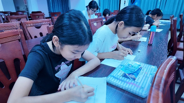 在繪畫環(huán)節(jié)中,隊(duì)員們?yōu)楹⒆觽儼l(fā)放了畫紙、畫筆,耐心地指導(dǎo)繪畫步驟及細(xì)節(jié),同時(shí)鼓勵(lì)大家自由發(fā)揮。隊(duì)員們一邊講解畫法,一邊穿插小知識:“貨幣上的圖案大多是國家的標(biāo)志性建筑、風(fēng)景或文化符號,體現(xiàn)著國家特色,必須要認(rèn)真對待?!焙⒆觽冊诶L畫過程中不僅鍛煉了繪畫技巧,還了解了貨幣背后的文化內(nèi)涵。