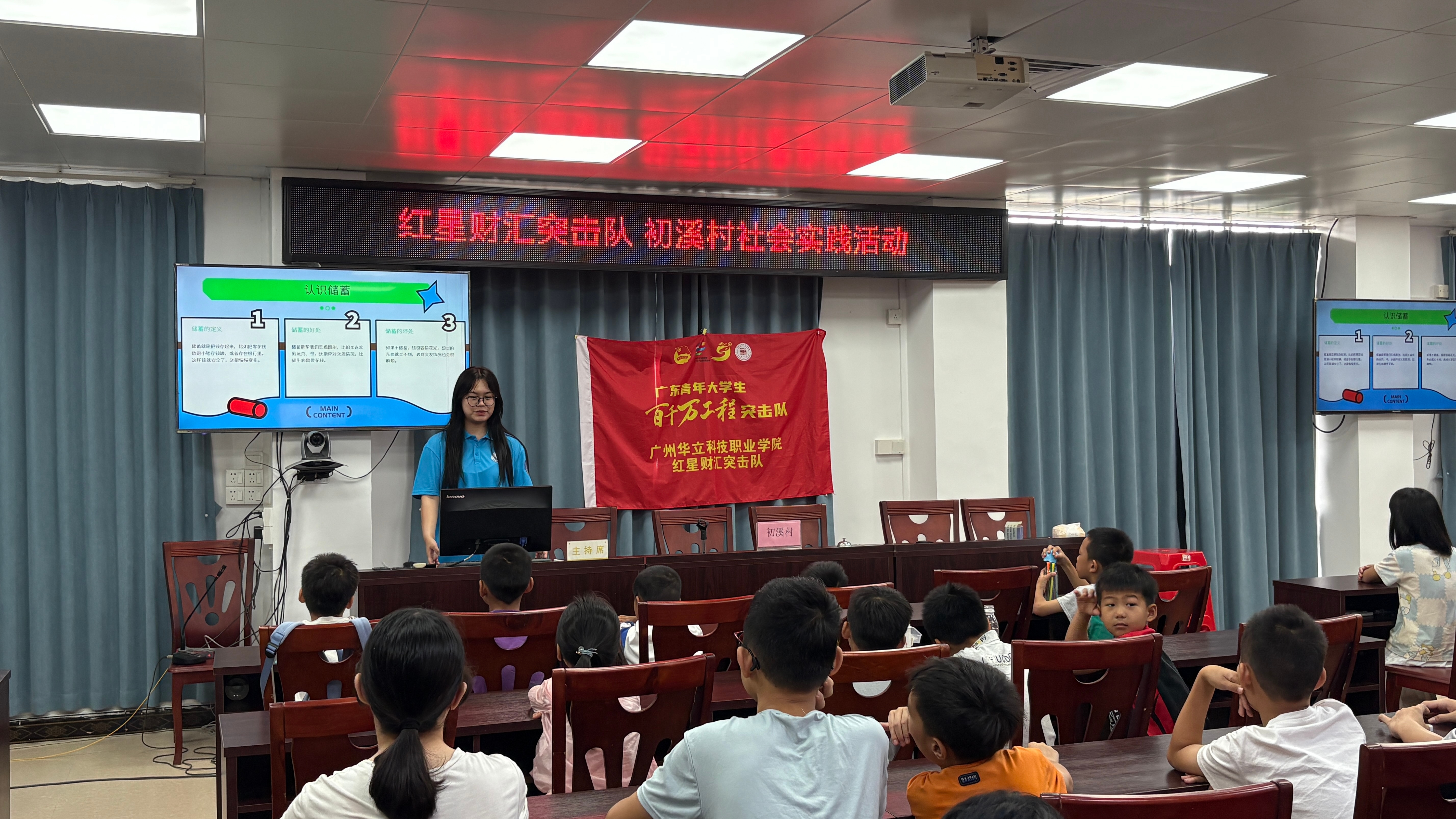 2025年7月13日,初溪村村委會的教室里熱鬧非凡,一場別開生面的儲蓄知識課正在這里舉行。來自廣州華立科技職業(yè)學(xué)院“三下鄉(xiāng)”紅星財(cái)匯突擊隊(duì)的志愿者們,以趣味講解、互動游戲等多種形式,為鄉(xiāng)村的孩子們帶來了一堂生動的財(cái)商啟蒙課。