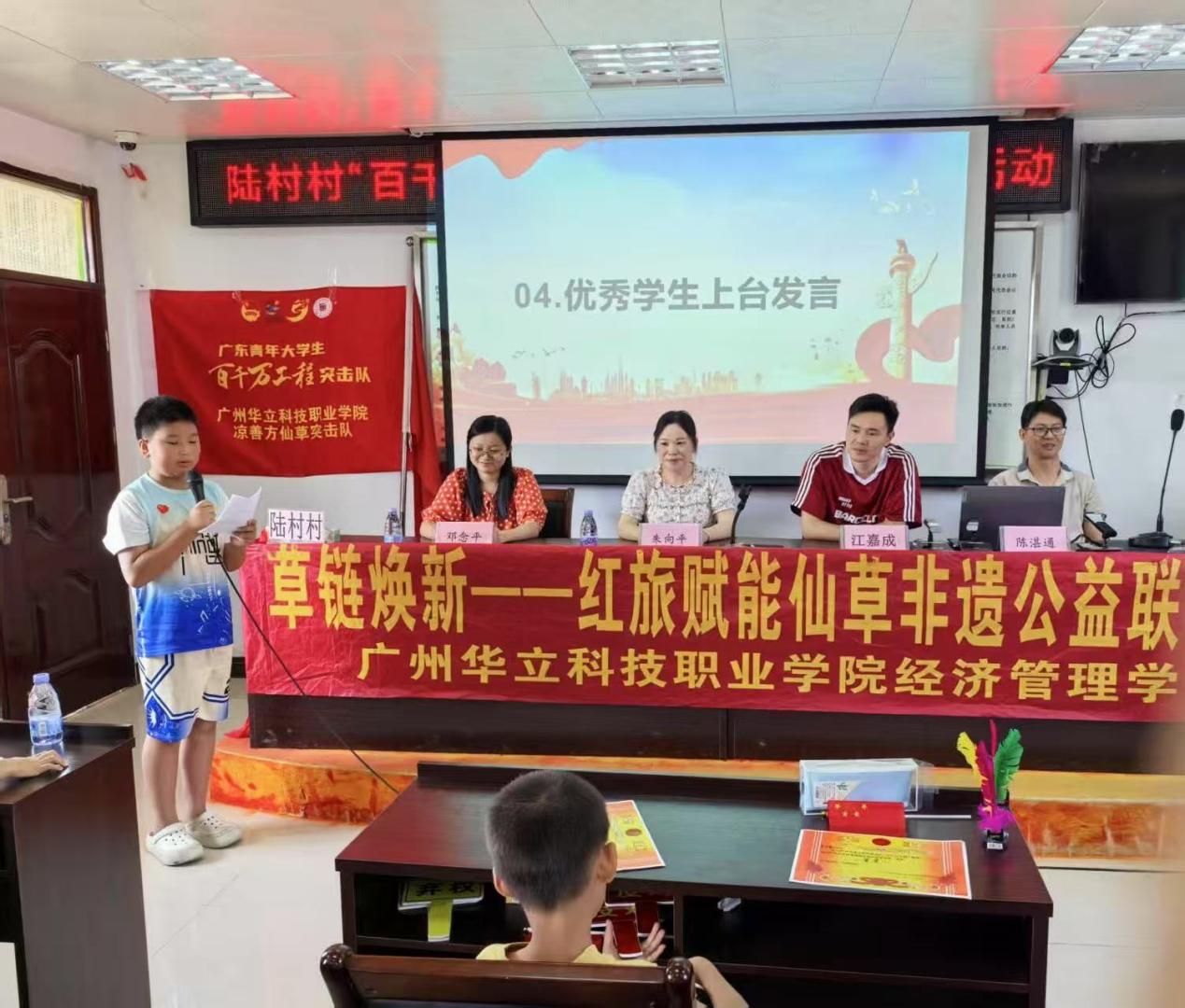 在這個夏天,廣州華立科技職業(yè)學(xué)院經(jīng)濟管理學(xué)院的涼善方仙草突擊隊于美麗的陸村開展了一系列富有意義的實踐活動。結(jié)營儀式上,經(jīng)濟管理學(xué)院朱向平副院長兼指導(dǎo)老師、陸村村委江嘉成主任以及指導(dǎo)老師們出席共同為這段特別的旅程畫上圓滿句號。