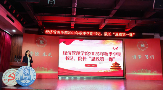 9月2日上午,經(jīng)濟(jì)管理學(xué)院在圖書館8樓舉行2025年秋季學(xué)期書記、院長“思政第一課”。學(xué)院黨總支書記、院長劉惠玲同志以“銘記偉大勝利,汲取奮進(jìn)力量”為主題,通過回溯歷史、解讀精神、展望未來三大篇章,為25級全體新生帶來一堂立體生動(dòng)的專題黨課。黨課由黨總支專職副書記謝曉慧同志主持,學(xué)院全體輔導(dǎo)員、24級學(xué)生代表及25級全體新生參加學(xué)習(xí)。