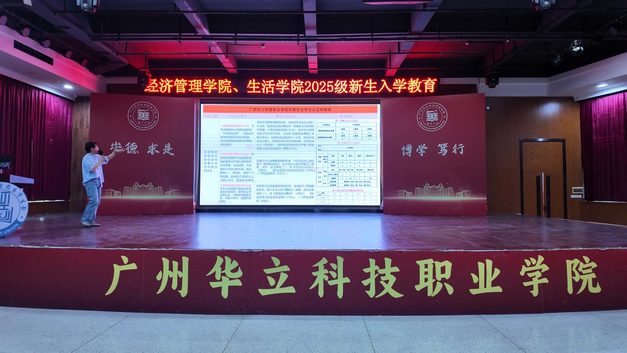 2025年9月5日上午,經濟管理學院與生活學院在廣州華立科技職業(yè)學院圖書館8樓報告廳聯(lián)合舉辦了2025級新生創(chuàng)新創(chuàng)業(yè)教育宣講會。會議由學院創(chuàng)新創(chuàng)業(yè)競賽負責人洪耿彬老師主講。