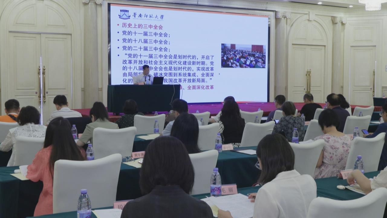 研修班上,華南師范大學(xué)學(xué)術(shù)委員會副主任、馬克思主義學(xué)院教授、博士生導(dǎo)師,教育部“長江學(xué)者”特聘教授陳金龍以《進(jìn)一步全面深化改革以推進(jìn)中國式現(xiàn)代化》為題授課;廣州大學(xué)黨委書記、校長、教授、博士生導(dǎo)師魏明海以《加快建構(gòu)中國哲學(xué)社會科學(xué)自主知識體系》為題授課;廣東外語外貿(mào)大學(xué)社會與公共管理學(xué)院教授吳月以《黨建引領(lǐng)社會組織高質(zhì)量發(fā)展:政策指引與典型案例分析》為題授課;市社科聯(lián)黨組成員、專職副主席譚曉紅以《建設(shè)具有強大凝聚力和引領(lǐng)力的社會主義意識形態(tài)》為題授課。