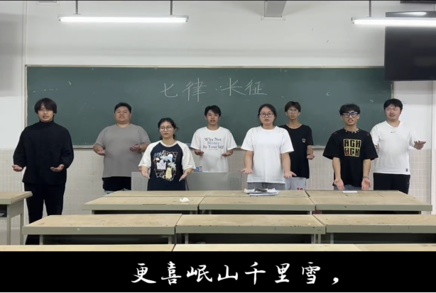 本學(xué)期伊始,毛中特教研室大膽革新實(shí)踐教學(xué)形式,面向全體修課學(xué)生發(fā)布獨(dú)具特色的實(shí)踐任務(wù):以多人小組為單位,從毛澤東經(jīng)典詩(shī)詞中任選一組進(jìn)行生動(dòng)演繹,創(chuàng)作并提交一部3-5分鐘的朗誦短視頻。教研室為此精心設(shè)計(jì)豐富的創(chuàng)作維度:作品選擇自由、朗誦形式多元、視頻表現(xiàn)新穎、解說(shuō)配樂(lè)并重、小組分工協(xié)作,等等。