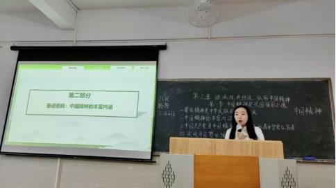 趙老師從“崇尚精神是中華民族的優(yōu)秀傳統(tǒng)”切入,精準(zhǔn)講解了中國精神的科學(xué)概念和深刻內(nèi)涵,生動解讀了偉大創(chuàng)造精神、偉大奮斗精神、偉大團(tuán)結(jié)精神與偉大夢想精神的豐富蘊涵,通過巧妙嫁接歷史典故、植入當(dāng)代實踐案例,引導(dǎo)學(xué)生穿越時空隧道,感知中華民族精神譜系的博大厚重,理解傳承中華民族精神的歷史自覺。授課有的放矢、言之有物、情理交融,賦予原理以深刻論證,還給予說教以現(xiàn)實關(guān)照和生活溫度,讓“中國精神”真正走進(jìn)學(xué)生心靈。
