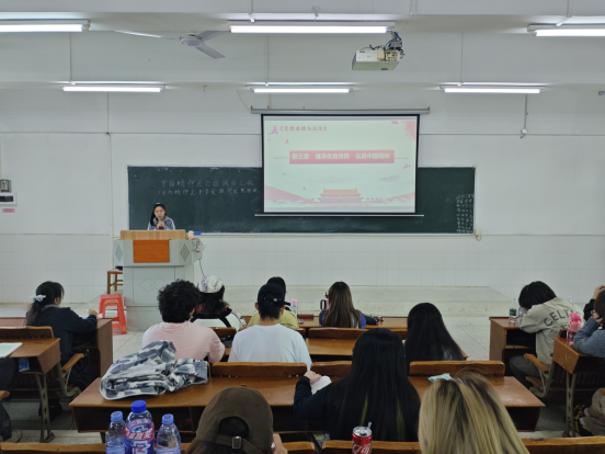 11月24日上午,校長廖俊杰教授來到圖書館501教室,聽取了馬克思主義學(xué)院惠攀老師講授的《思想道德與法治》第三章第一節(jié)“中國精神是興國強(qiáng)國之魂”的隨堂課。教務(wù)處處長孫麗英、校督導(dǎo)專家朱君、魏育華、馬克思主義學(xué)院副院長伍揆祁和部分沒有課的思政課教師參加。