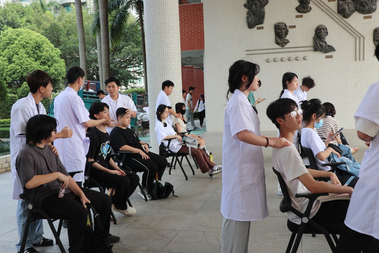 中醫(yī)藥學(xué)院王暉院長、中醫(yī)藥學(xué)院直屬黨支部書記曾祥彪老師、張志勇副院長,蒞臨現(xiàn)場指導(dǎo),中醫(yī)藥學(xué)院的學(xué)生們也積極參與到理療服務(wù)中,通過親身實踐,不僅提升了自己的專業(yè)技能,還加深了對中醫(yī)藥文化的熱愛。
