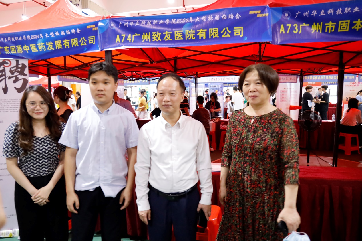 參觀結束后,醫(yī)院醫(yī)務科相關負責人還參加了我校2024年校園大型招聘會。招聘期間,學校黨委書記陳良聲親臨招聘現(xiàn)場關心招聘情況并現(xiàn)場指示中醫(yī)藥學院相關負責同志按需指導醫(yī)學專業(yè)學生積極應聘。
