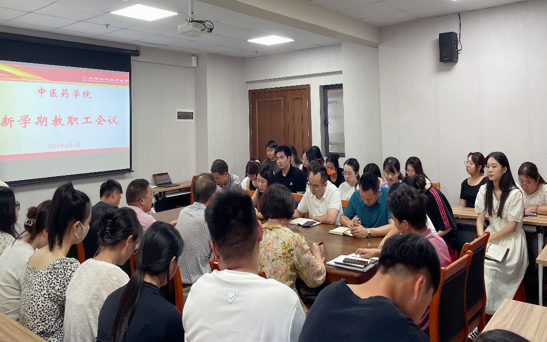 為學(xué)習(xí)貫徹黨的二十屆三中全會(huì)精神,全面抓好學(xué)院新學(xué)期的各項(xiàng)工作,提高人才培養(yǎng)質(zhì)量。中醫(yī)藥學(xué)院于8月26日和9月3日分別舉行了教學(xué)分享培訓(xùn)會(huì)和新學(xué)期教職工兩場(chǎng)會(huì)議均在G1-212會(huì)議室舉行,中醫(yī)藥學(xué)院院長(zhǎng)王暉,學(xué)院直屬黨支部書(shū)記、副院長(zhǎng)曾祥彪,副院長(zhǎng)張志勇以及全體教師參加了會(huì)議。