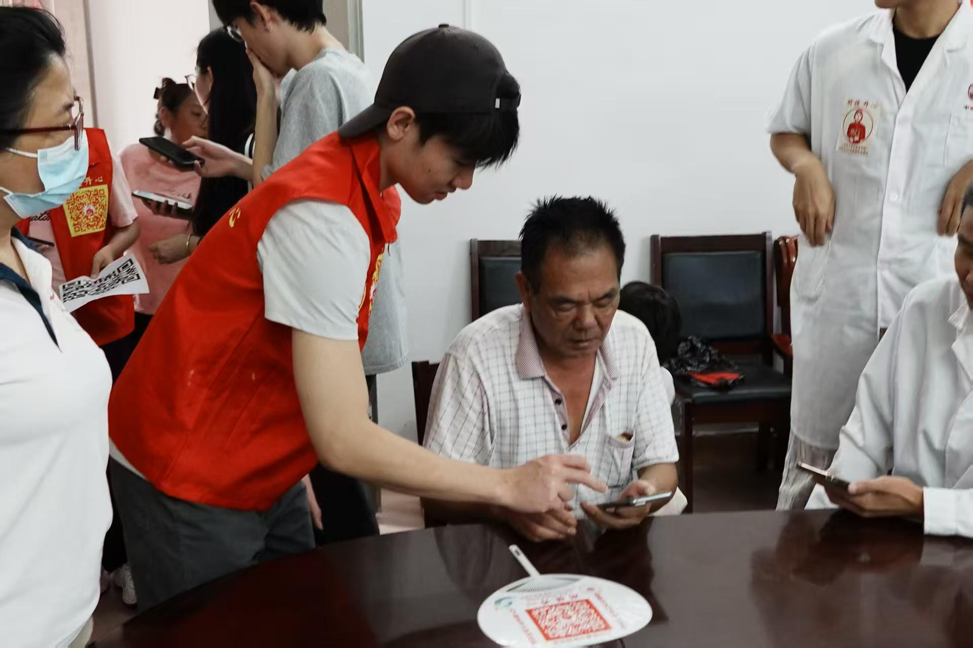 義診現(xiàn)場,聞訊趕來的村民們體驗了艾灸、推拿、錘療等中醫(yī)特色外治療法。針對許多村民主訴的肘痛、頸痛等各種疼痛,義診團隊在潘菽弢博士帶領(lǐng)下,一面通過望、聞、問、切,細致地為村民分析這些疼痛的成因和核心病灶點,一面用嫻熟的手法精準定位病灶點,取得立竿見影的療效。之所以能取得這樣的效果,是因為該團隊自今年4月份起就啟動了鄉(xiāng)村居民治療需求和中醫(yī)新媒體認知情況的問卷調(diào)查,根據(jù)調(diào)查發(fā)現(xiàn)的鄉(xiāng)村居民高發(fā)病種,拍攝了一系列治療這些疾病的短視頻作品,并憑借這些調(diào)查報告和中醫(yī)鄉(xiāng)村公益短視頻斬獲了“挑戰(zhàn)杯”、“大創(chuàng)”等科創(chuàng)競賽獎項。今天村民主訴的這些疼痛,正是團隊之前的短視頻專輯“諸痛備急方”中重點講解的病種。因此在治療隊員治療疼痛的同時,負責視頻推送的同學就給排隊等待的村民播放相應(yīng)的短視頻作品,讓他們在這種“案例教學”中切身體會到中醫(yī)的優(yōu)勢和中醫(yī)短視頻的便利性。