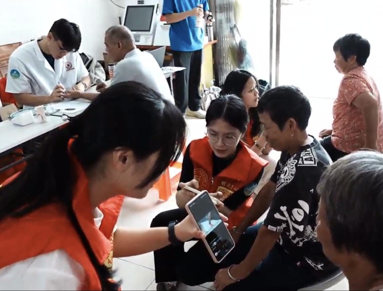 圖3.現(xiàn)場引導(dǎo)候診村民關(guān)注團隊視頻號