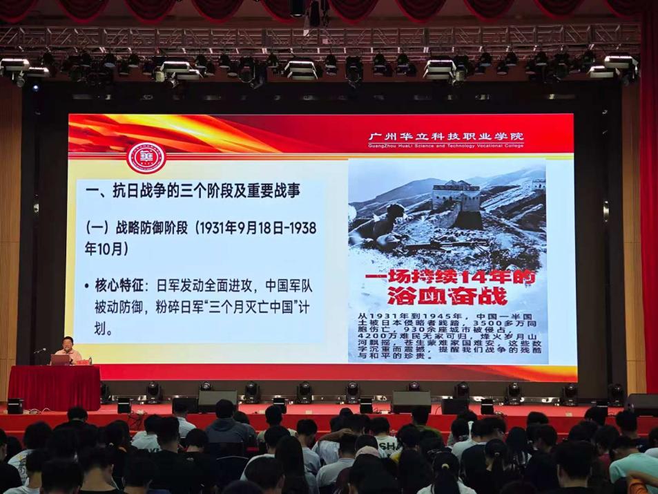 抗戰(zhàn)勝利不是天上掉下來的,是3500萬同胞用生命換來的。曾書記結(jié)合“七七事變”“南京大屠殺”“百團(tuán)大戰(zhàn)”等歷史事件,梳理抗戰(zhàn)歷程中的關(guān)鍵節(jié)點,讓新生們直觀感受到抗戰(zhàn)不易。“我們紀(jì)念抗戰(zhàn),不是為了延續(xù)仇恨,而是為了讓你們明白:和平是多么珍貴,民族精神是多么強(qiáng)大?!彼麖?qiáng)調(diào),新時代青年要從歷史中汲取“天下興亡、匹夫有責(zé)”的愛國情懷,“把個人命運與國家命運緊密聯(lián)系在一起”。