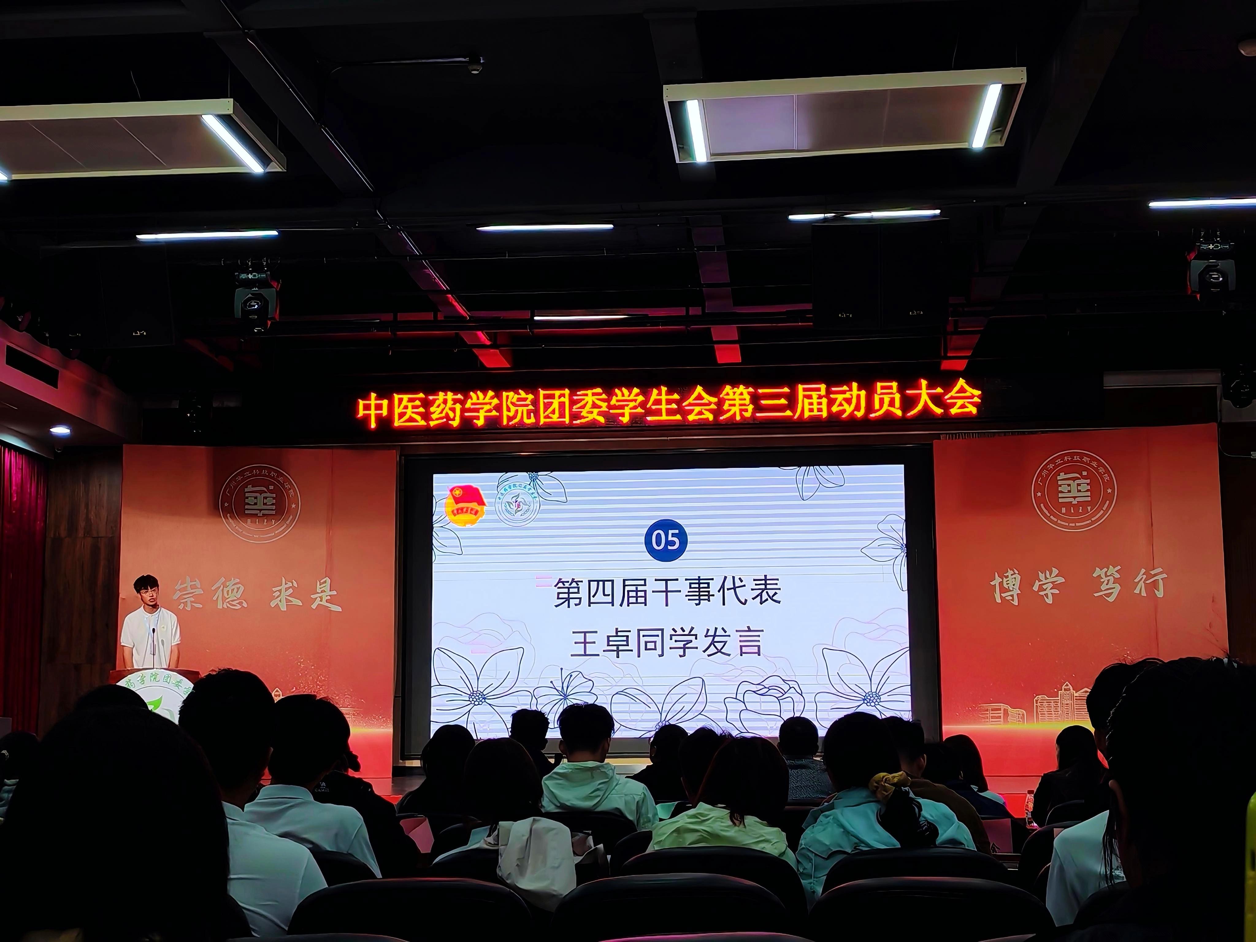 中醫(yī)藥學(xué)院團(tuán)委學(xué)生會(huì)第四屆干事代表王卓同學(xué)進(jìn)行發(fā)言