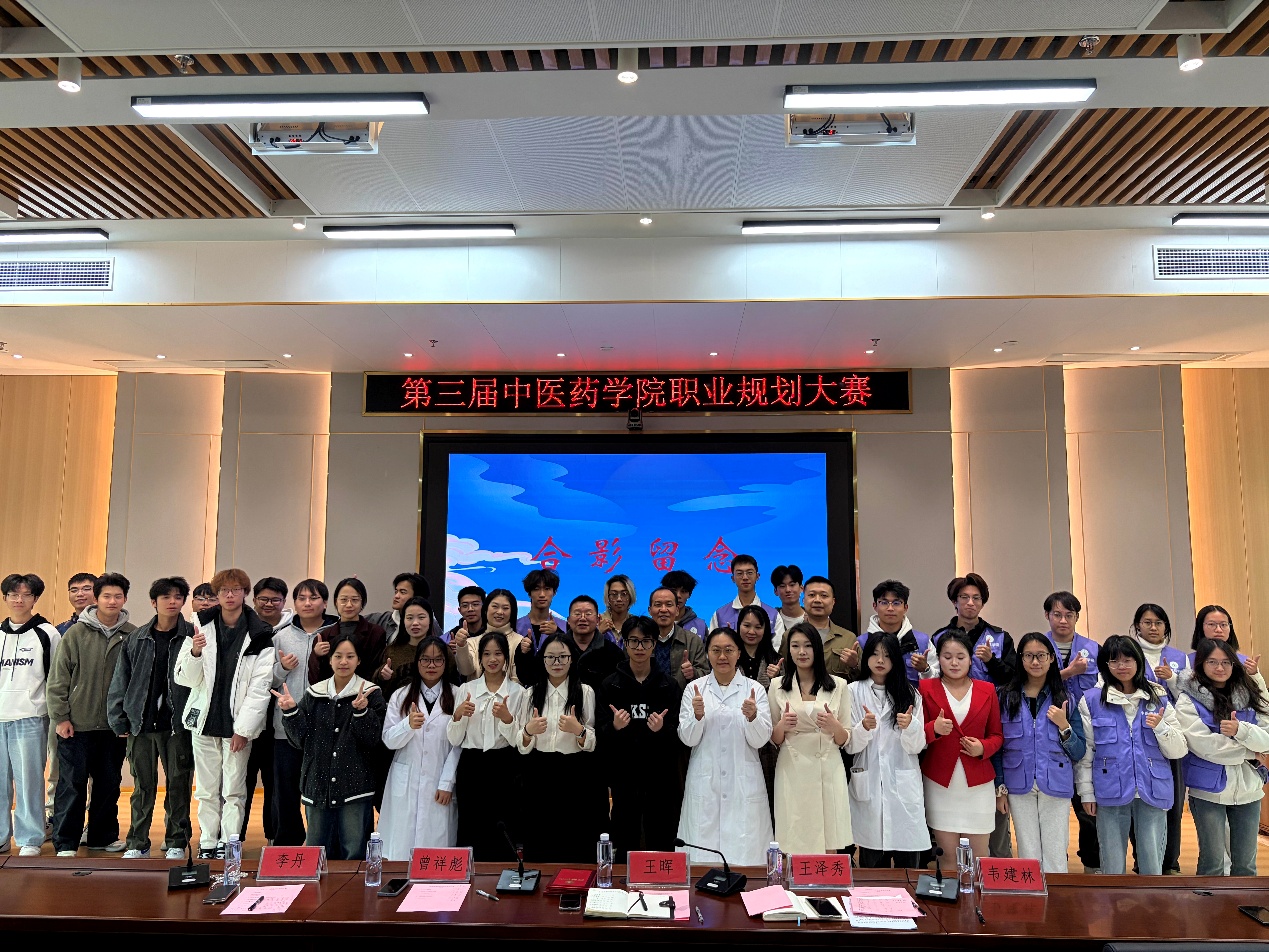 此次職業(yè)規(guī)劃大賽不僅為學(xué)子搭建了梳理職業(yè)思路、展現(xiàn)自我風(fēng)采的優(yōu)質(zhì)平臺,有效助力大家提升就業(yè)競爭力,更有力推動(dòng)了學(xué)院職業(yè)規(guī)劃教育的深化發(fā)展,為培養(yǎng)兼具專業(yè)素養(yǎng)與職業(yè)規(guī)劃意識的中醫(yī)藥人才筑牢根基。最后,全體人員合影留念,為本次大賽畫上圓滿句號。