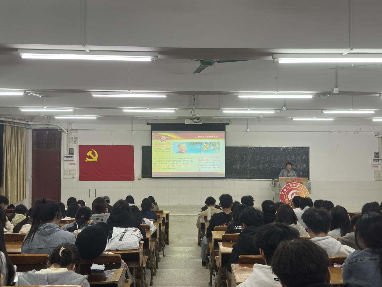 宣講伊始,曾祥彪書記以互動(dòng)提問開篇,圍繞“全國(guó)人民代表大會(huì)召開周期”“黨的二十大以來全會(huì)召開次數(shù)”等問題與同學(xué)們交流,現(xiàn)場(chǎng)學(xué)子踴躍應(yīng)答、精準(zhǔn)作答,迅速營(yíng)造出濃厚的學(xué)習(xí)氛圍。隨后,曾書記系統(tǒng)梳理黨的二十屆各次全會(huì)核心內(nèi)容,重點(diǎn)解讀黨的二十屆四中全會(huì)精神,從“十四五”時(shí)期我國(guó)取得的舉世矚目發(fā)展成就,到全會(huì)審議通過的“十五五”規(guī)劃建議部署,清晰勾勒新時(shí)代發(fā)展的宏偉藍(lán)圖。宣講中,他著重強(qiáng)調(diào)人民群眾在國(guó)家發(fā)展中的核心地位,通過梳理毛澤東同志在《政治周報(bào)》發(fā)刊詞中的相關(guān)論述、習(xí)近平總書記在重要會(huì)議上的民生論述,深刻闡釋黨的人民立場(chǎng)與執(zhí)政理念。