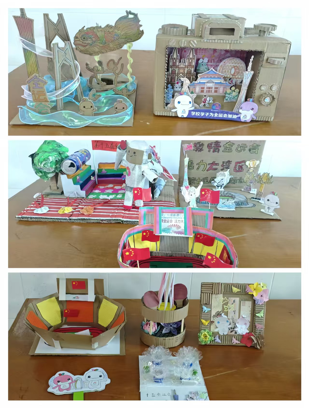 在為期兩周的創(chuàng)作周期里,參賽者們圍繞“十五全運(yùn)會(huì)”這一核心主題,充分發(fā)揮想象力與動(dòng)手能力,將日常生活中廢棄的塑料瓶、紙箱、舊報(bào)紙等物品,巧妙轉(zhuǎn)化為一件件富有創(chuàng)意和寓意的精美手工作品。這些作品或展現(xiàn)運(yùn)動(dòng)健兒的矯健身姿,或體現(xiàn)全運(yùn)會(huì)會(huì)徽、吉祥物等核心視覺(jué)元素,構(gòu)思巧妙,主題鮮明,充分展示了同學(xué)們對(duì)十五全運(yùn)會(huì)的熱切期待與獨(dú)特理解。