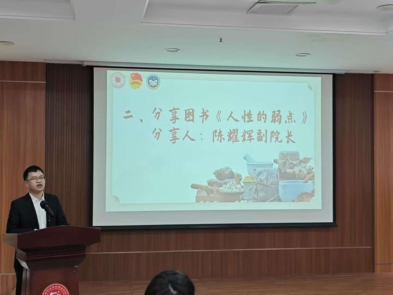 活動(dòng)伊始,副院長(zhǎng)陳耀輝圍繞《人性的弱點(diǎn)》中的三個(gè)重點(diǎn)“不要責(zé)備或抱怨、學(xué)會(huì)傾聽、真誠地贊美他人”展開分享,并強(qiáng)調(diào),作為中醫(yī)藥從業(yè)者,醫(yī)術(shù)是根基,而人際溝通則是橋梁。