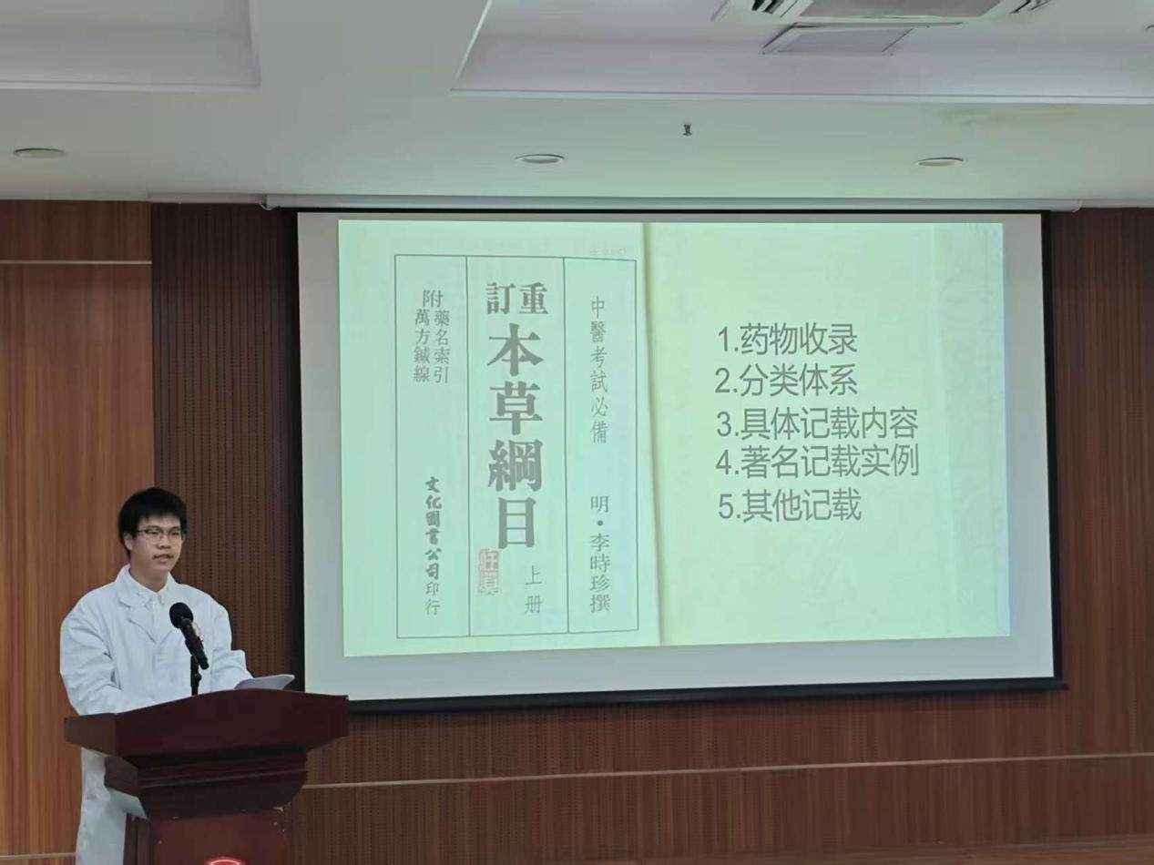 陶鹍宇同學(xué)帶來的《本草綱目》使中醫(yī)學(xué)子能更深入地了解中藥的世界,為今后的臨床用藥打下堅(jiān)實(shí)的基礎(chǔ)。