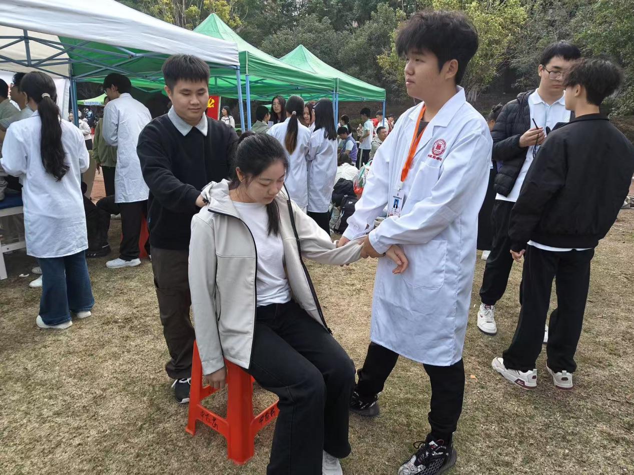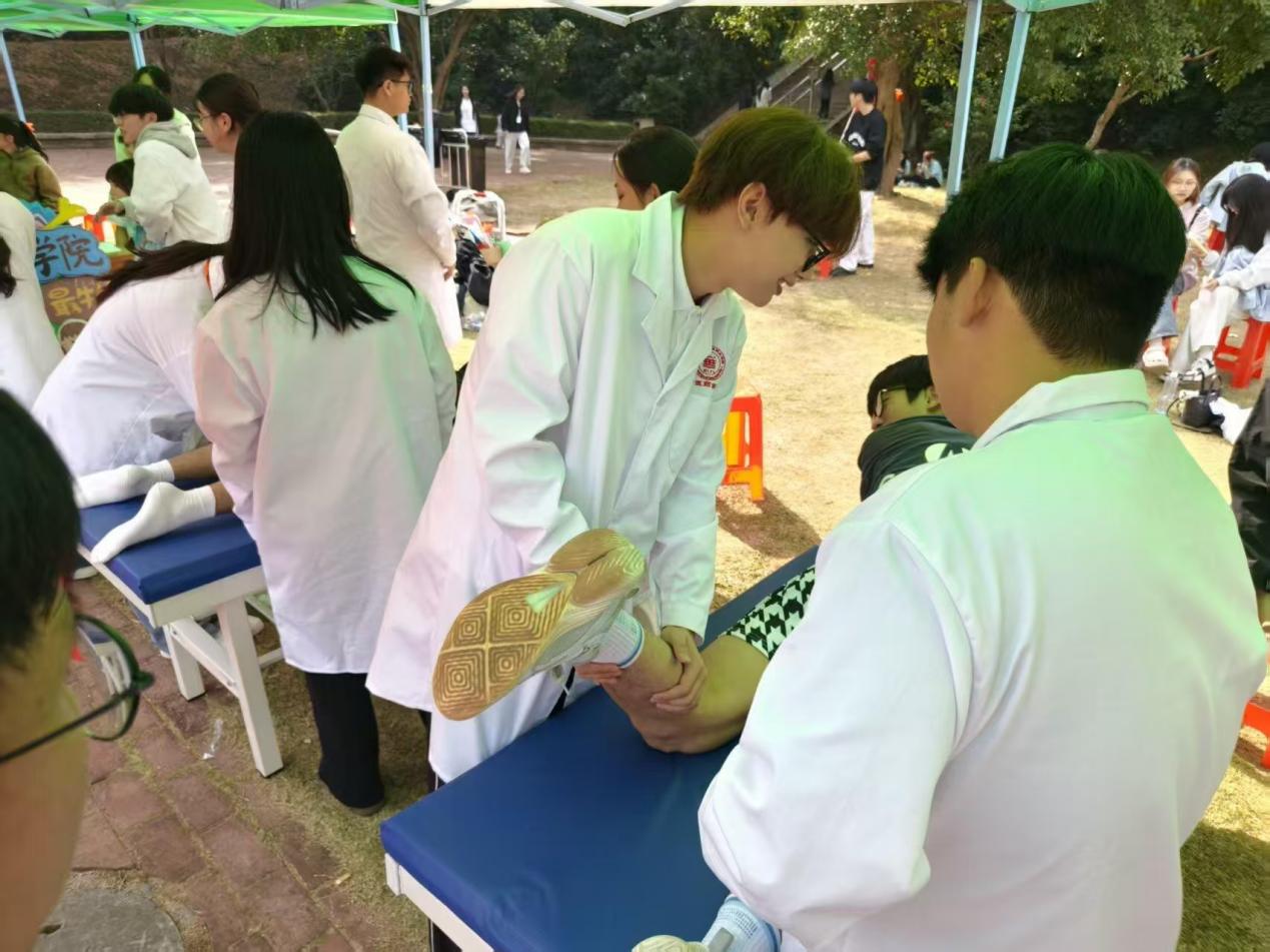 活動現(xiàn)場,師生團隊化身“健康導師”,結(jié)合日常健康需求,現(xiàn)場演示推拿、針灸等中醫(yī)藥基礎(chǔ)理療手法。演示過程中,老師們細致講解人體常用穴位的定位、按摩力度操作要點,通過“理論+實操”的方式,將專業(yè)的中醫(yī)藥知識轉(zhuǎn)化為通俗易懂的講解,手把手指導參與者上手體驗,耐心解答大家關(guān)于肩頸放松、運動后康復等常見問題。此次互動教學讓參與者直觀感受到中醫(yī)藥文化的獨特魅力與實用價值,不僅系統(tǒng)掌握了日常運動康復、肩頸舒緩的簡易理療技巧,提升了自我健康管理能力,更在親身體驗中加深了對傳統(tǒng)醫(yī)學的認知與認同,進一步推動了中華優(yōu)秀傳統(tǒng)醫(yī)學文化在校園的傳承與發(fā)展。