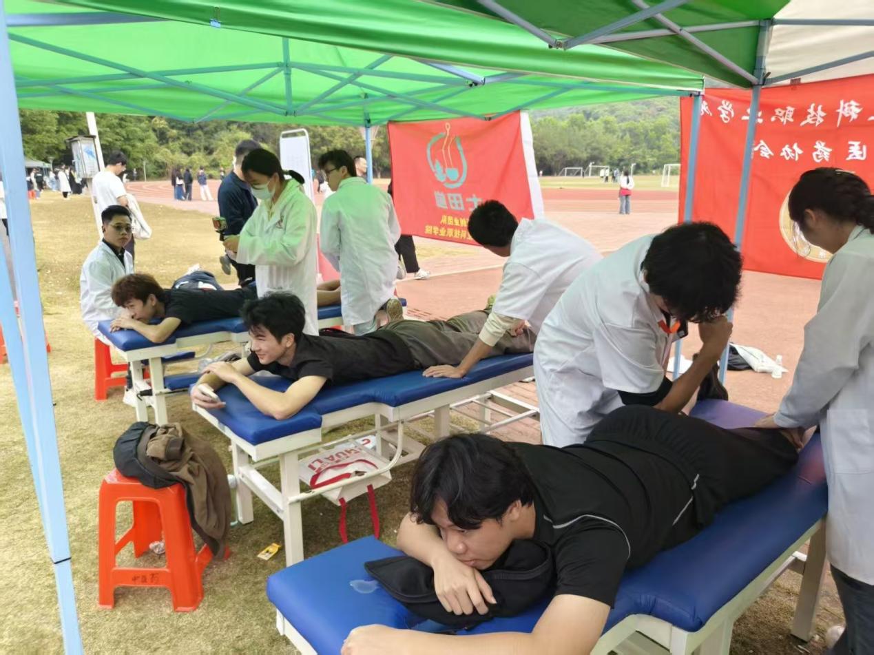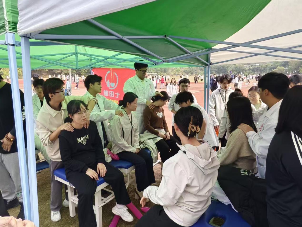 2025年12月10日至11日,學校第十四屆田徑運動會期間,中醫(yī)藥學院黨建小組聯(lián)合中醫(yī)藥協(xié)會,以“健運逐光,理療護航”為主題,在田徑場開展暖心理療志愿服務活動。活動兩天累計組織近100人次志愿者參與,依托專業(yè)中醫(yī)藥技術(shù)為校運會參與者提供全方位理療支持,涵蓋運動員運動損傷應急處理、疲勞緩解等內(nèi)容?,F(xiàn)場搭建一站式理療服務中心,由中醫(yī)藥專業(yè)師生團隊分時段、分區(qū)域精準服務,既保障了賽事后勤,也為師生搭建了實踐平臺,充分體現(xiàn)了學校對師生健康的高度重視與人文關(guān)懷。